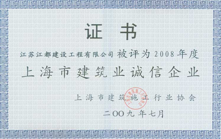 2008年度上海市建筑業(yè)誠信企業(yè)
